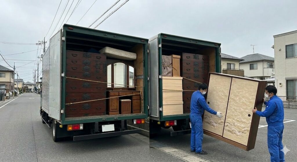 スタッフがご自宅まで伺い、搬出もお手伝い。事前見積りで安心してご利用いただけます。まずはお気軽にご相談ください。