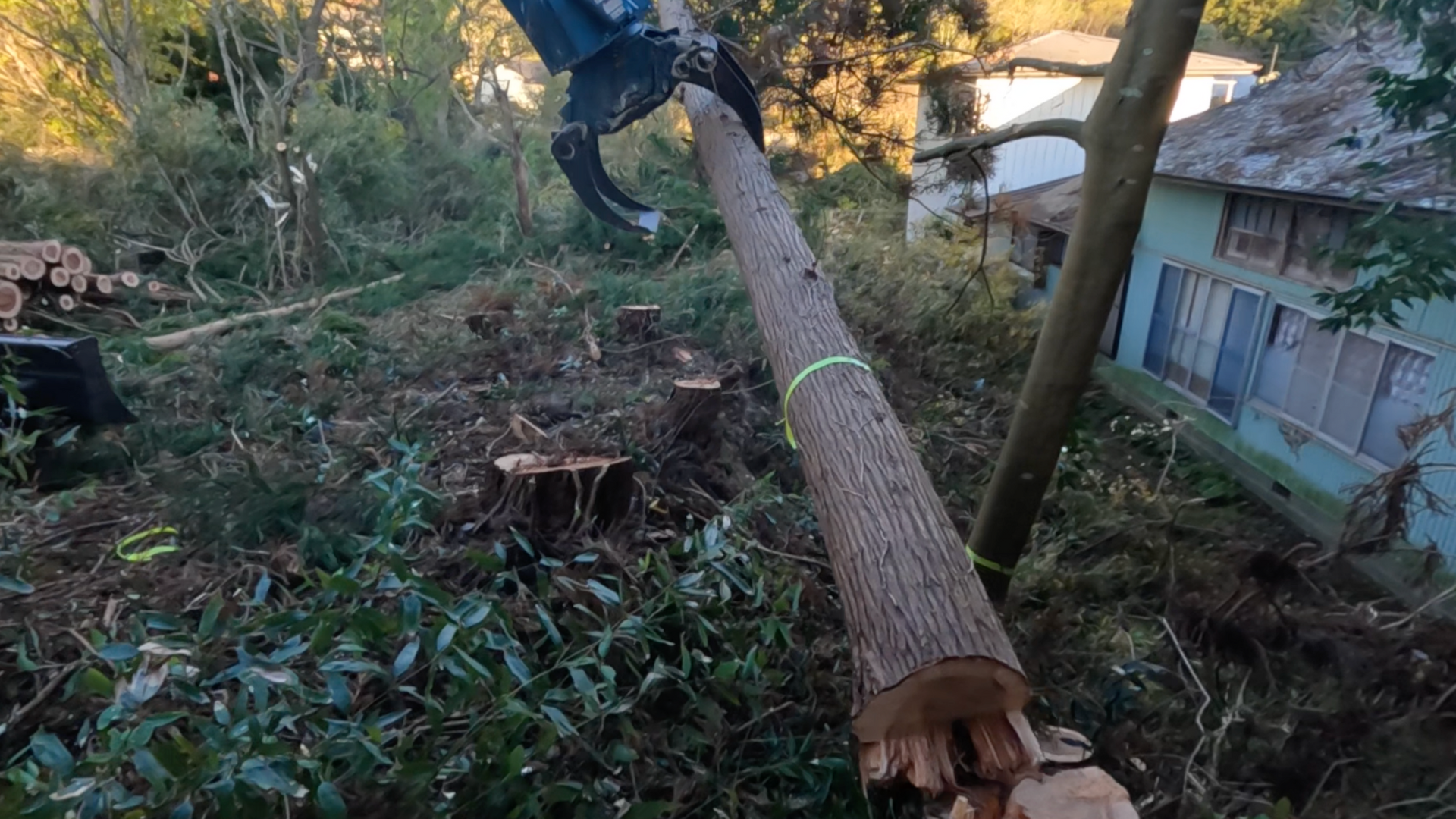 以下の動画は、実際に行った樹木伐採の様子です。一旦重機を撤収して、後で草刈りをして仕上げます。ぜひご視聴ください。